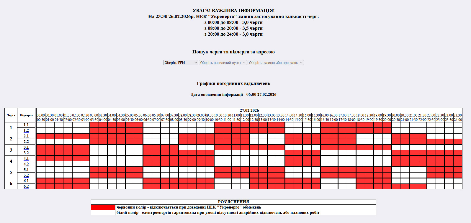 з 00:00 до 24:00 – графіки погодинних відключень (ГПВ)