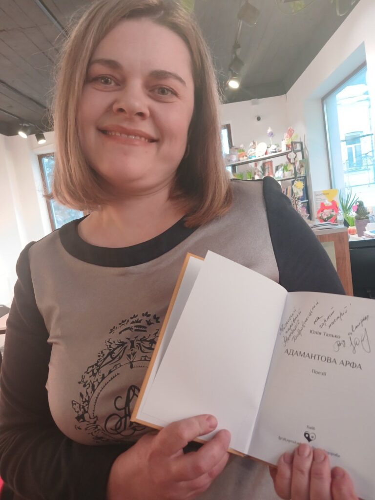 Вечір звуків коштовного слова пройшов у Гончаренко-центрі Житомира. На презентацію книги поезій Юлії Талько «Адамантова арфа» завітали друзі, рідні, колеги, мистецтвознавці та знані літератори краю. Рецензію на книгу написала Євгенія Юрченко, членкиня НСПУ, просвітянка. Вона привітала авторку з виходом другої збірки.
