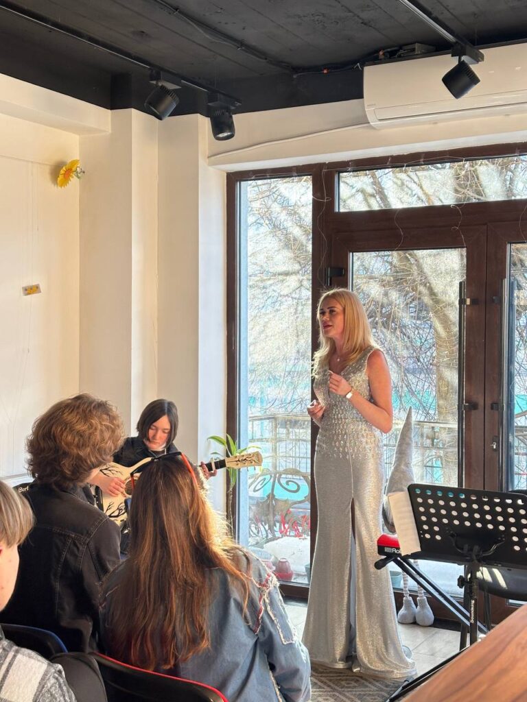 Презентація книги «Адамантова арфа» пройшла дещо незвично — кожна з поезій супроводжувалась акомпанементом, відповідно вечір набув натхненного мелодійного звучання, заколихуючи гостей заходу на хвилях звуків музики та слова. Музичні номери прозвучали від: Іванни Шмайхель, концертмейстерки зразкового хору «ESTRELLA» та Ірини Опанащук, диригентки зразкового хору «ESTRELLA» Закладу «Музична школа Гармонія ЖМР» і оркестру «Music Lab» міста Житомира. Натхненно грали Ярослав Маніхровський, Каріна Залевська, Сергій Загладько, учасники гуртка гри на гітарі Державного університету «Житомирська політехніка». Бард Руслан Мединський подарував гостям нову пісню «Колискова» на слова Юлії Талько, а Олексій Приймак, соліст гурту «Ловець снів», налаштував всіх на «Позитив».
