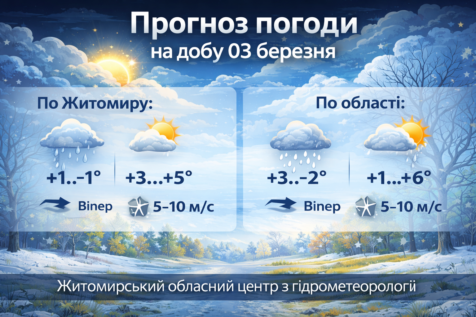 Хмарно з проясненнями. Вночі невеликий дощ, місцями з мокрим снігом. Вдень без опадів.