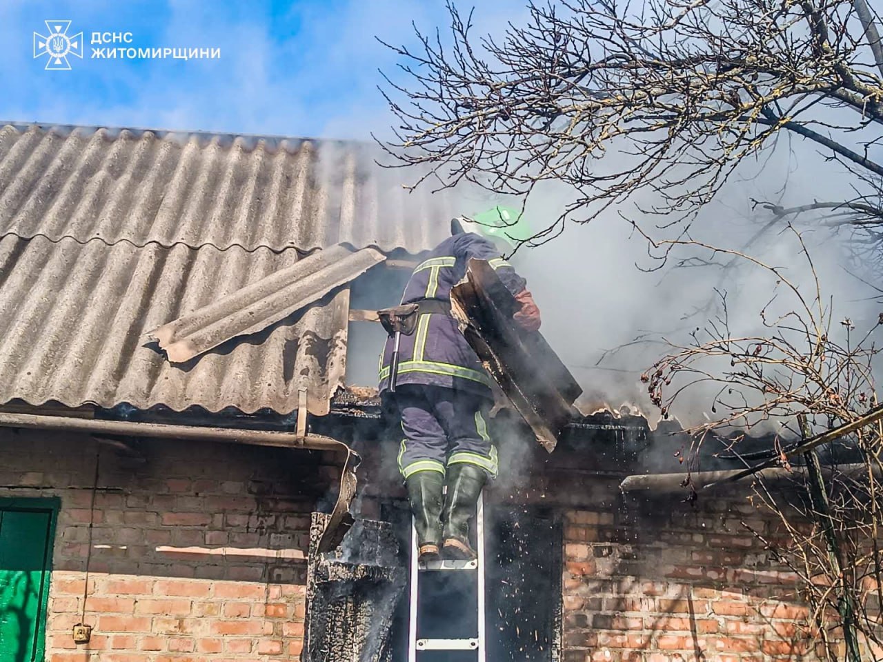 Ще одне загоряння у житловому будинку гасили фахівці ДСНС в селі Слобідка Житомирського району. Внаслідок пожежі знищено покрівлю.