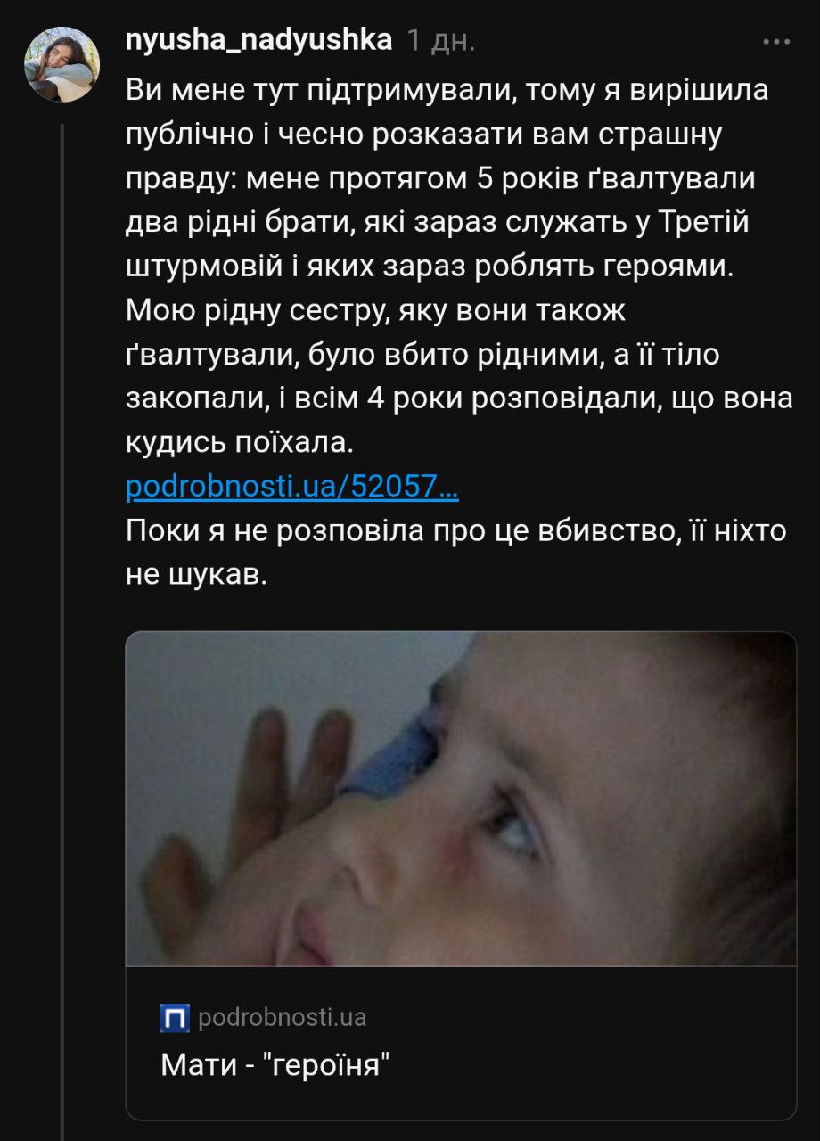 У Threads поширюються дописи дівчини, яка заявила, що в дитинстві зазнавала сексуального насильства з боку рідних братів, а її молодшу сестру після знущань вбили та приховали смерть.