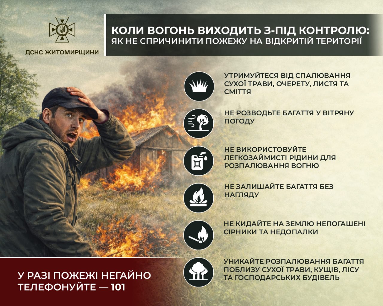Ознайомтеся з пам’яткою та дотримуйтеся правил пожежної безпеки. У разі пожежі телефонуйте 101.