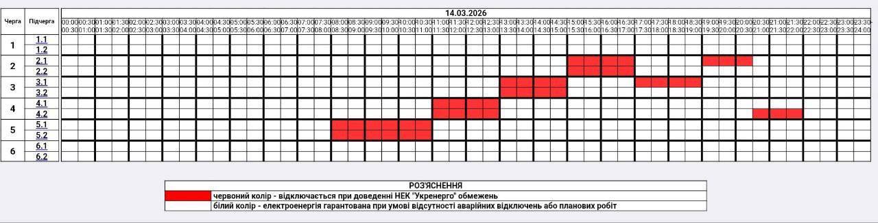 Оперативна ситуація в енергосистемі України станом на ранок 14 березня