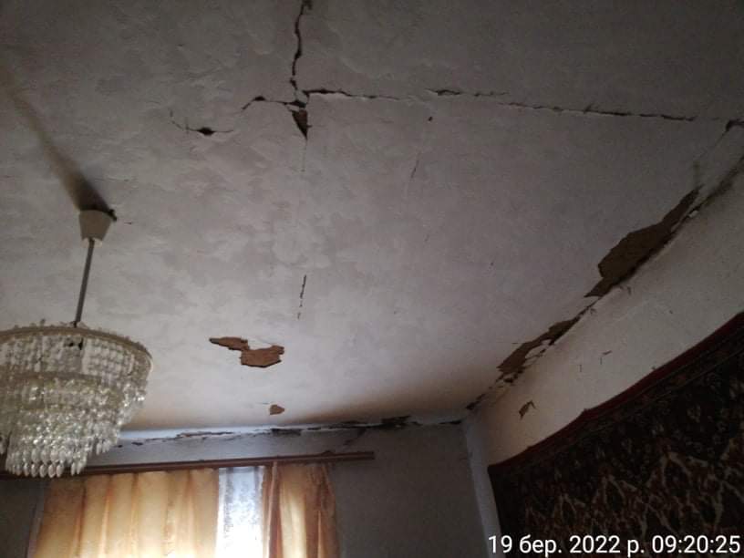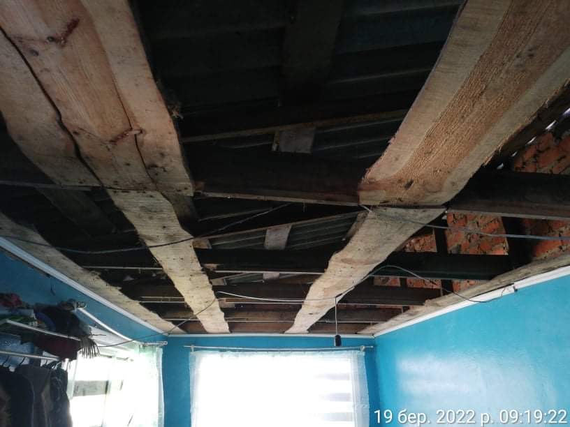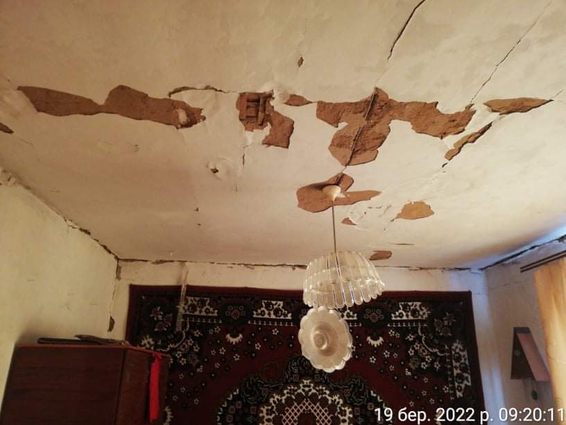 Будинок Любови Павлівни зазнав серйозних пошкоджень. Повністю зруйнований дах, знищена стеля в одній із кімнат, усе почорніло від вибухів. «У мене є фотографії, щоб показати, як воно було. То це один Господній страх… Усе чорне, усе, – описує жінка стан свого житла. – По стіні такі текли струмочки»…