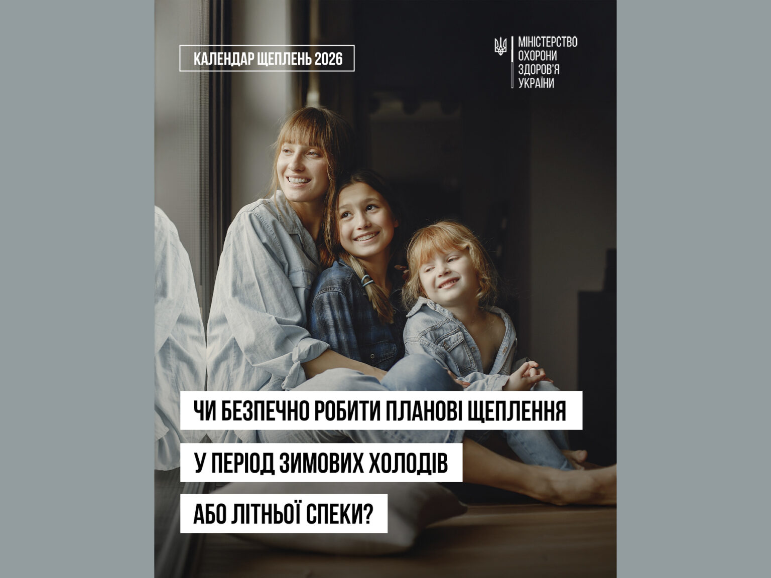 Національний календар щеплень розроблений так, щоб захистити вас або вашу дитину завчасно — до контакту із інфекцією. Колективний імунітет базується на тому, що діти різного віку вчасно щеплюються і захищаються від інфекційних захворювань. Погода — не привід  переносити вакцинацію і тим самим наражатися на небезпеку.