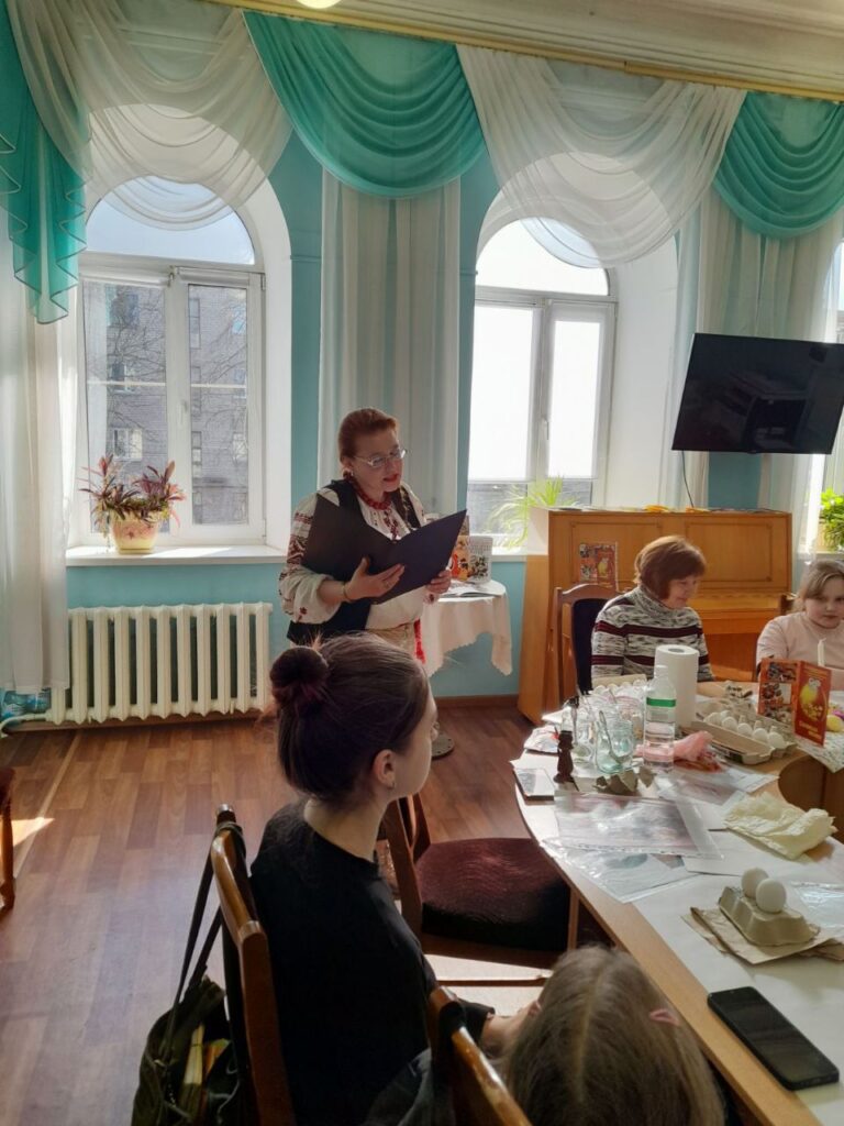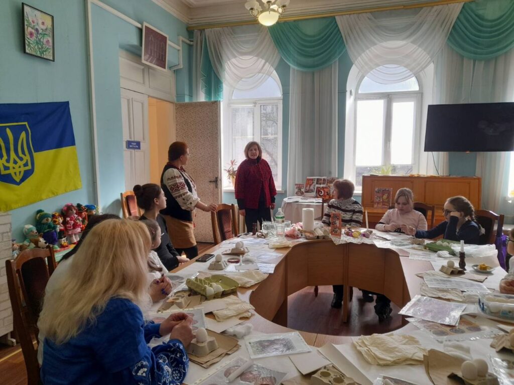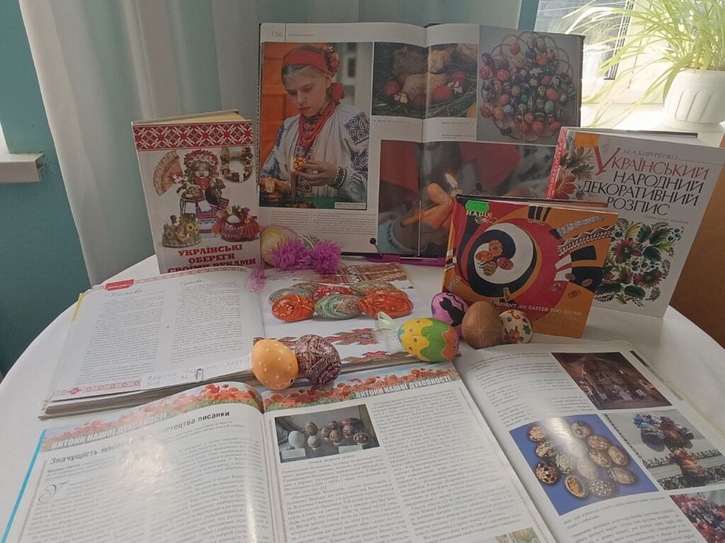Привітала присутніх і розповіла про тематичну книжкову виставку бібліограф Тетяна Бабич: «Тут представлена література про українські народні звичаї, традиції, обряди. Ви прочитаєте про писанку, як про декоративно-прикладне мистецтво, про писанки з різних регіонів України. Дізнаєтесь, що писанка — духовний космос української нації та генетичний код нашого українського народу. Є література про техніки створення писанки. Якщо тема Вас зацікавить, запрошую до бібліотеки, записуйтесь і користуйтесь нашими фондами».