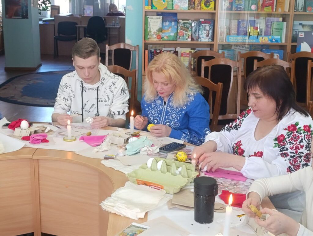 Всі учасники майстер-класу, більшість з яких писали писанки вперше, успішно справились з цікавим завданням. Завершили зустріч фотографуванням та оглядом запропонованої літератури.