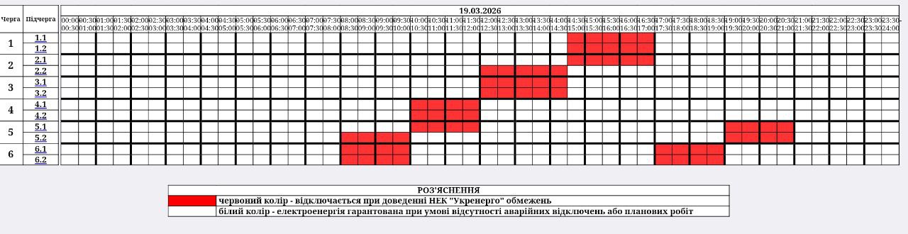 з 08:00 до 21:00 – графіки погодинних відключень (ГПВ)