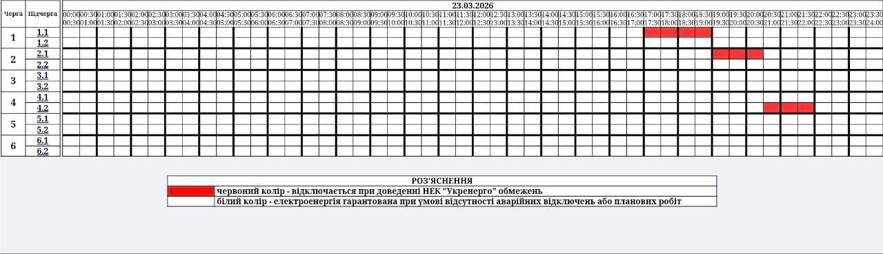з 17:00 до 22:00 – графіки погодинних відключень (ГПВ)