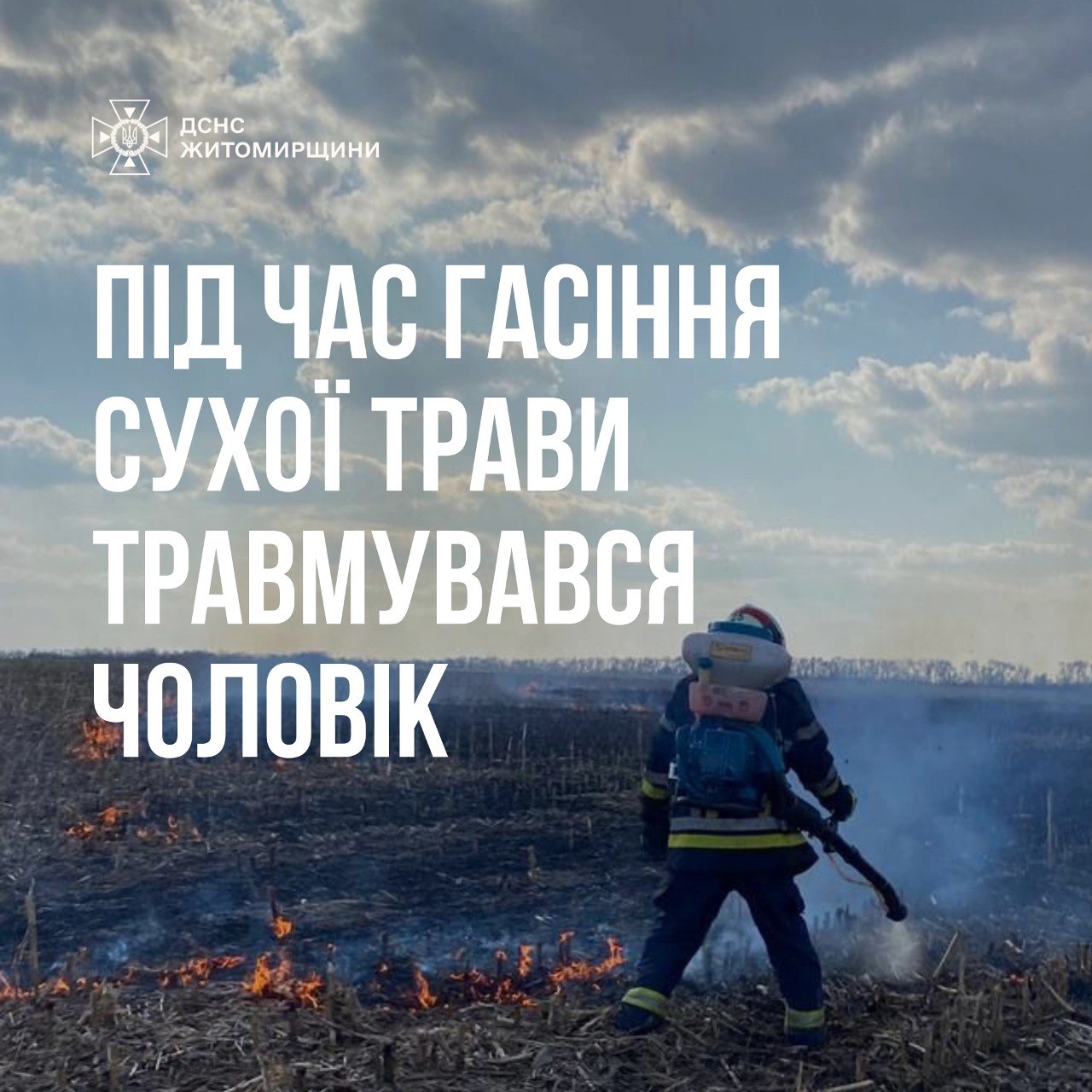 Під час самостійного гасіння пожежі сухої рослинності опіки отримав 67-річний чоловік. Його госпіталізували медики.