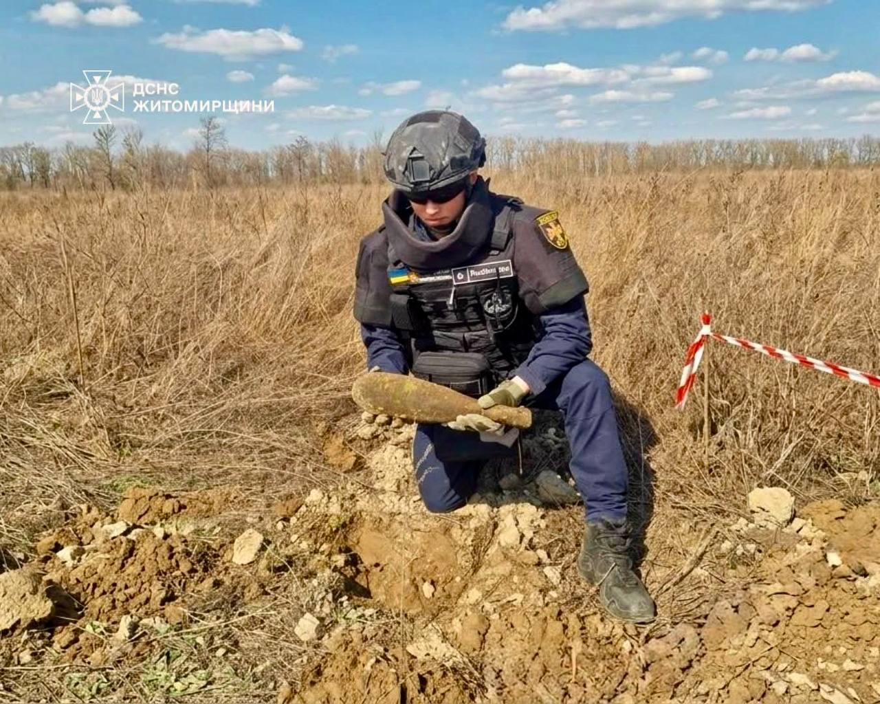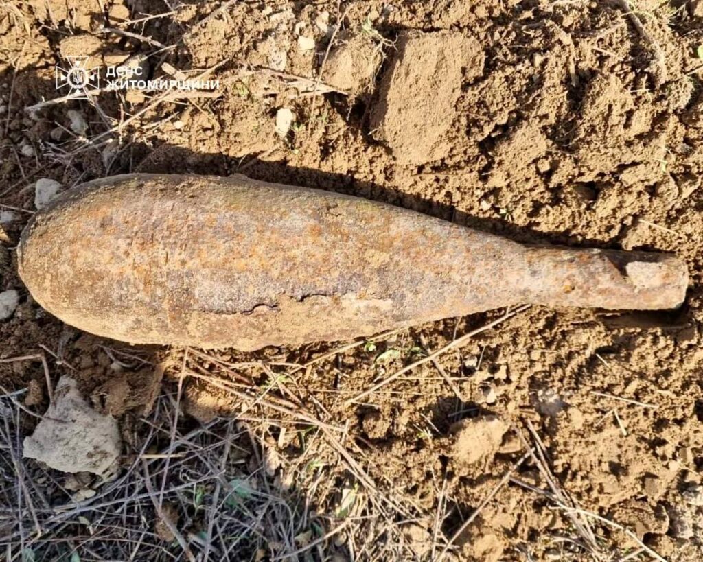 Сьогодні піротехніки ДСНС області знешкодили мінометну міну часів Другої світової війни, що була знайдена напередодні поблизу с. Юрівка Коростенського району.