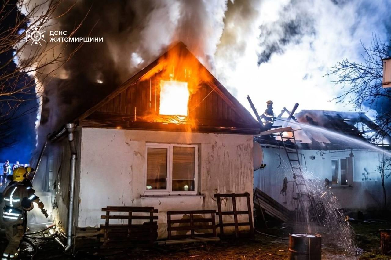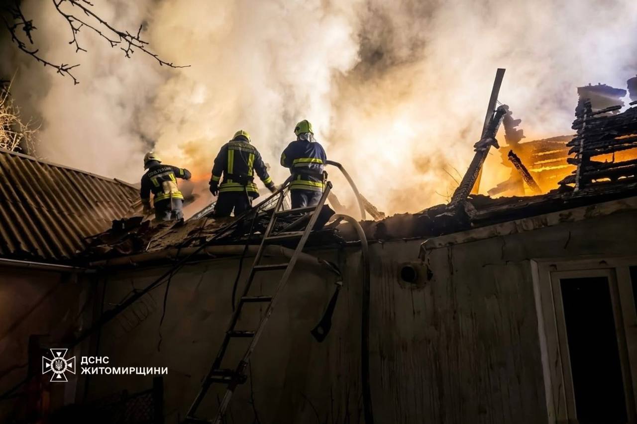 Сьогодні вночі в Житомирі рятувальники залучалися на гасіння приватного житлового будинку. Вогонь охопив покрівлю оселі. Площа пожежі складала близько 200 кв.м. Існувала загроза розповсюдження полум’я всередину будинку. Для підвозу води залучили додаткове відділення рятувальників.