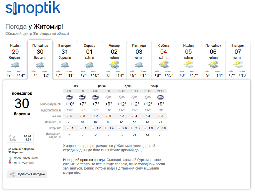 В Україні вже на початку наступного тижня очікується суттєве погіршення погодних умов. За прогнозами синоптиків, після нетипово теплого кінця березня в країну повернеться прохолода, місцями можливі нічні морози та навіть мокрий сніг.