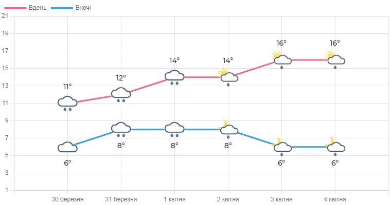 Прогноз погоди на день 31 березня по Житомирській області: