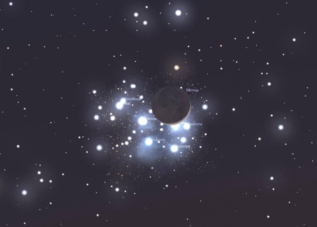📸 2. Покриття Місяцем скупчення Плеяди. Stellarium