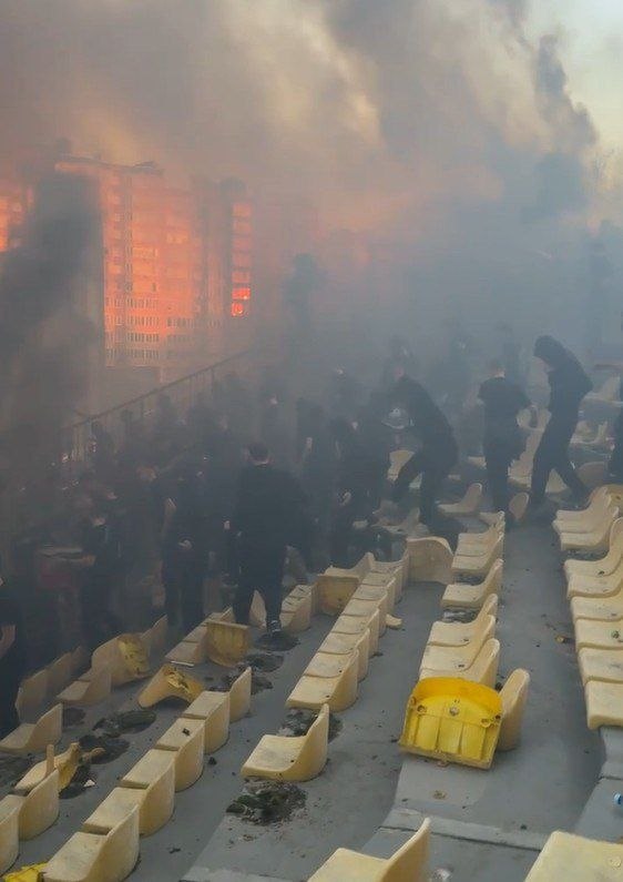 Фанати запалили димові шашки, через що гру довелося зупиняти.