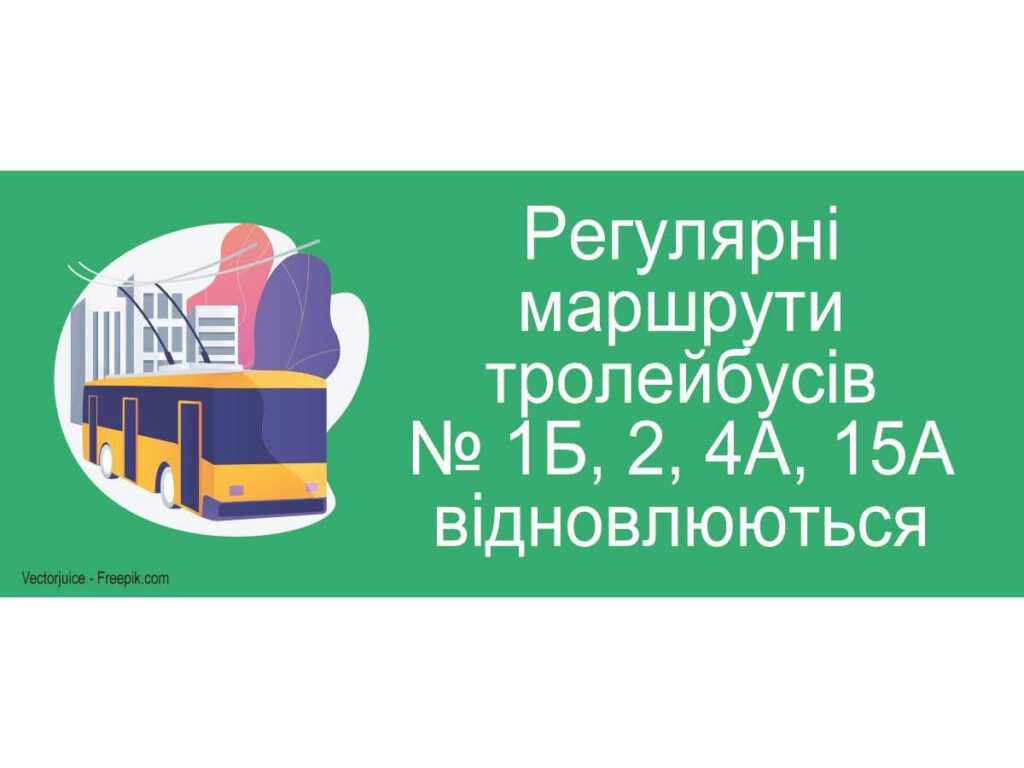 З п’ятниці, 24 квітня, рух тролейбусів відновлюється за регулярними маршрутами та згідно з розкладом.